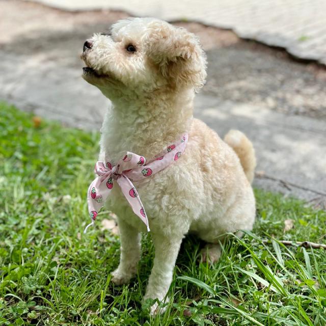 結ぶタイプなので、わんちゃんの首に合わせてぴったり調整可能◎
