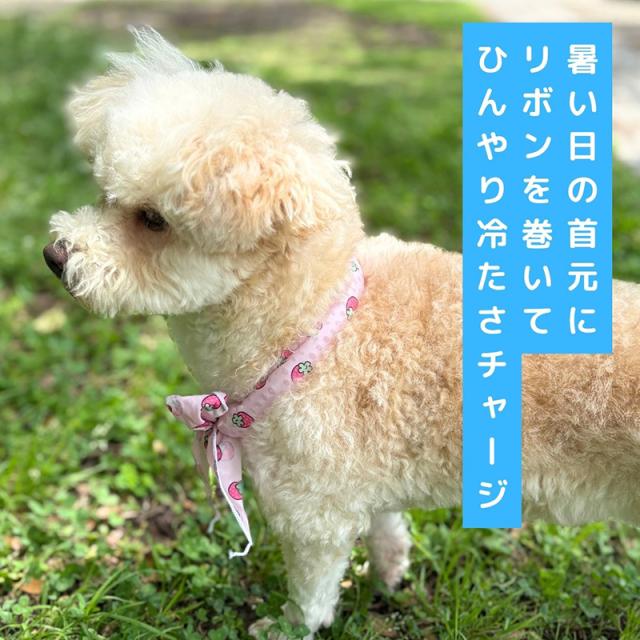わんちゃんの首元をやさしく冷やしてくれる、リボンタイプのクールネック。