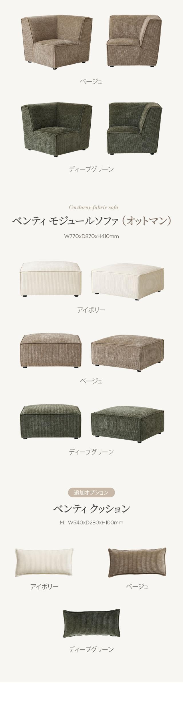 roomnhome モジュール ソファ Venti 4点セット コーデュロイ生地 カウチソファー セット オットマン ユニットソファ おしゃれ L字 I字 1人掛け 2人掛け 3人掛け 二人掛け 肘付き 韓国 インテリア(代引不可)【送料無料】