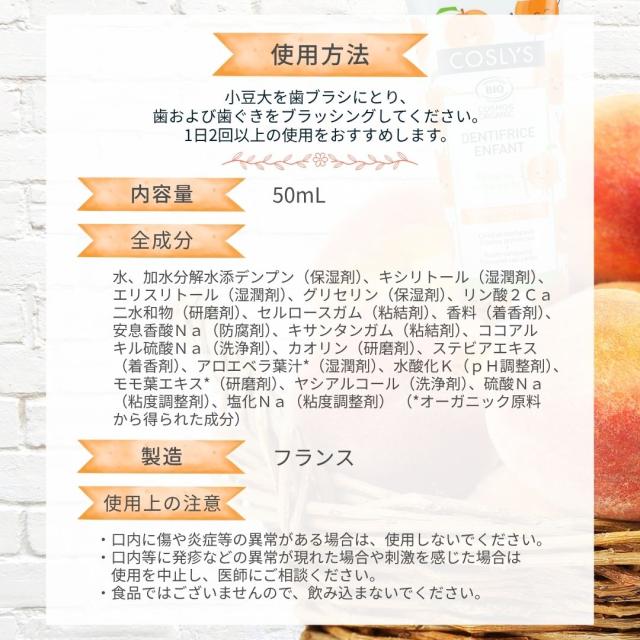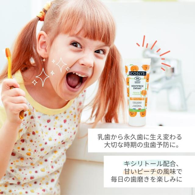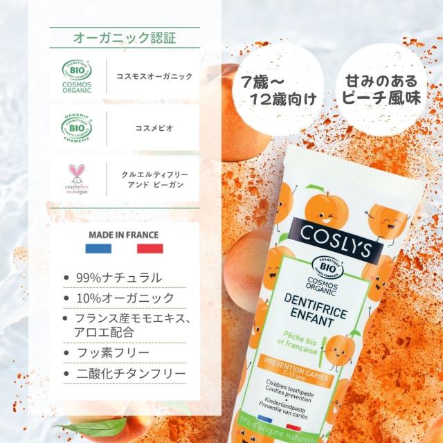 コスリス ジュニア歯みがきジェル ピーチ風味 50ml 7歳〜12歳向け オーガニック&天然由来 キシリトール配合 フッ素・二酸化チタンフリー 生え変わる時期の無防備な歯にオーガニック歯磨き