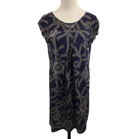 【中古】アルチザン ワンピース チュニック Iライン ミニ タック リネン 総柄 フレンチスリーブ 11 紺 グレー