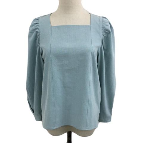 【中古】グローブ ブラウス カットソー プルオーバー スクエアネック 千鳥格子 ギャザー 総柄 長袖 M 緑 グリーン