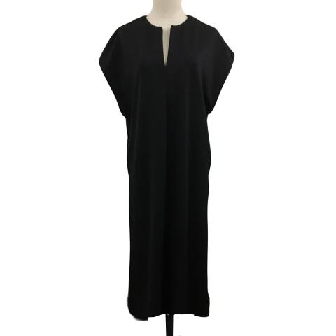 【中古】アプレトロ ap retro ワンピース Iライン ロング スリットネック 無地 半袖 F 黒 ブラック レディース