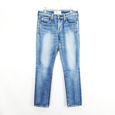【中古】サムシング SDN300 デニム ジーンズ スリム ストレート ユーズド加工 X-SMALL ブルー ※EKM レディース
