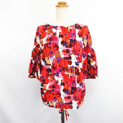 【中古】レスピーギ ブラウス 五分袖 ラグランスリーブ ラウンドネック 総柄 バックボタン 40 レッド系 ※EKM