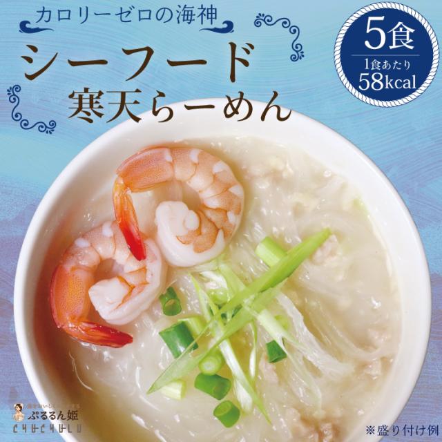 シーフード寒天らーめん5食 罪悪感ゼロ ダイエット食品 夜食 ラーメン 置き換えダイエット 低糖質 低カロリー 糖質制限 糖質オフ 食事 満腹感 大豆ミート ぷるるん姫 チュチュル ヘルシースタイル 送料無料