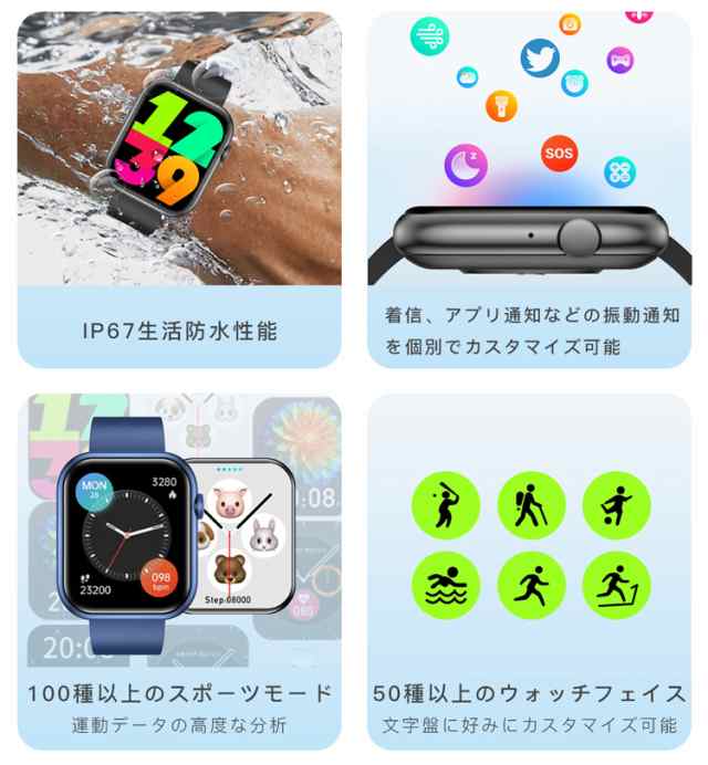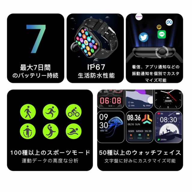 スマートウォッチ 日本製センサー 血糖値測定 血圧 通話機能付き 技適認証済み ゲーム 体温計測 1.85/2.0インチ大画面 心拍数 LINE着信通知 VER5.2 IP67防水 健康管理 血中酸素濃度 睡眠モニター 運動記録 レディース メンズ 父の日 ギフト プレゼント