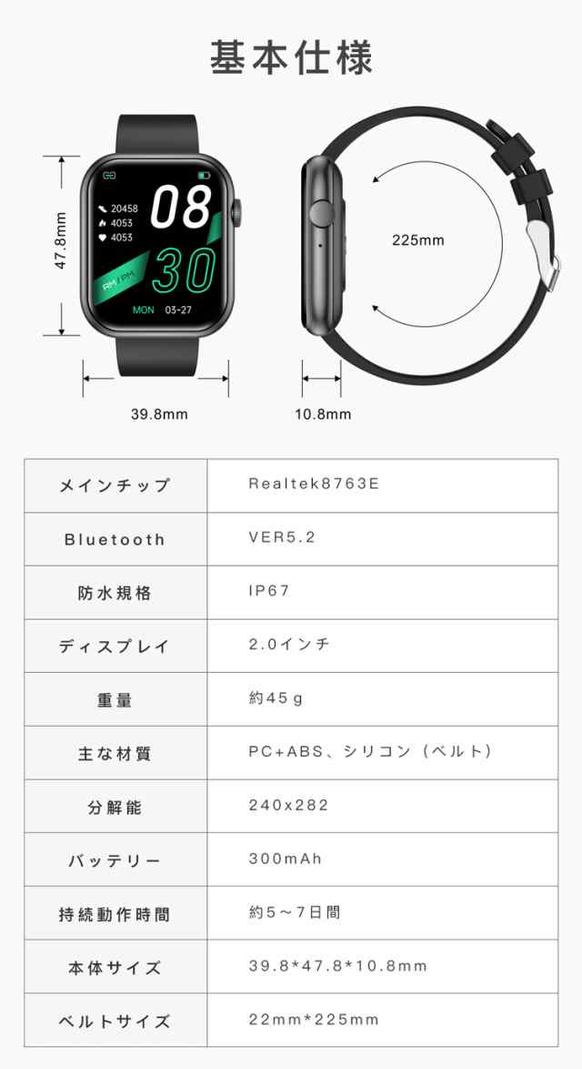 Bluetooth通話ができる進化版スマートウォッチ。会議中や運動中、携帯電話からの通話は時計に反映されるので、ワンクリックで応答でき、両手が自由になります。着信の応答と拒否もできます。他にも嬉しい機能がたくさん!ストップウォッチ、音楽再生、座りがち注意、文字盤自由変更、スマートウォッチ探しなど様々な機能を搭載されております。