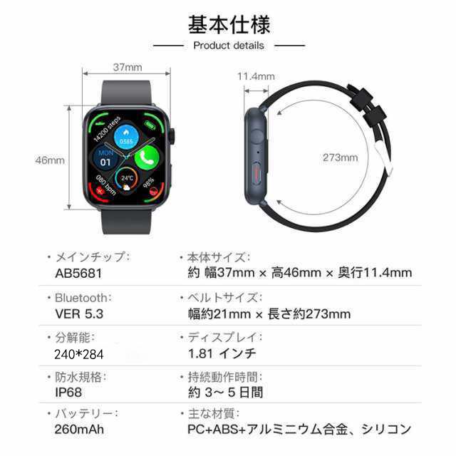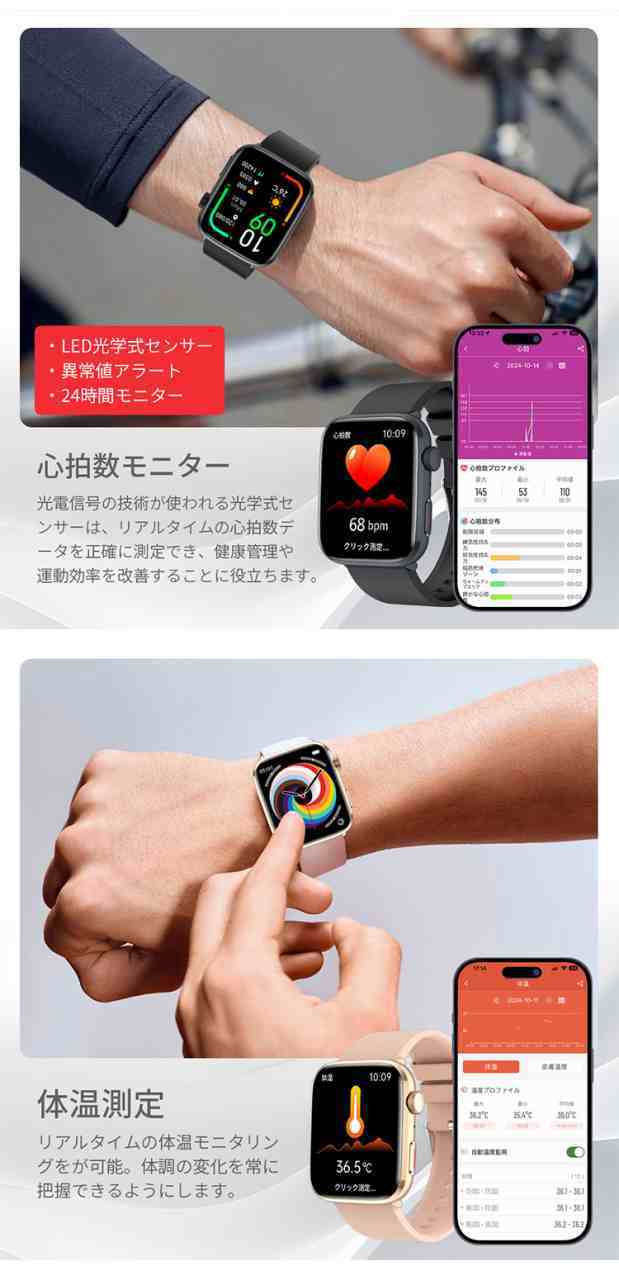 スマートウォッチ 血糖値測定 メンズ レディース 日本製センサー IP68防水 健康管理 体温測定 睡眠モニター 血圧計 心拍計 着信通知 天気予報 歩数計 通話機能付き レディース メンズ スマートウォッチ女性用 iPhone Android Line対応