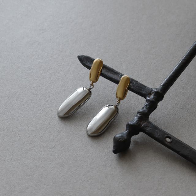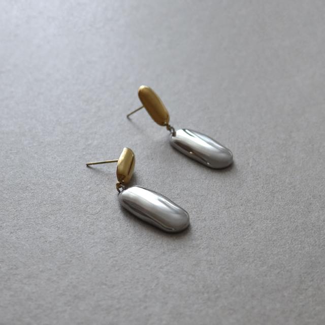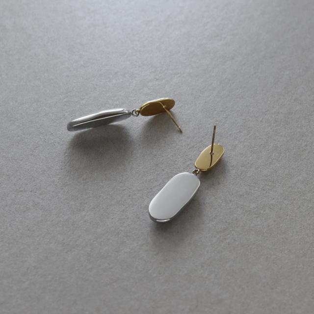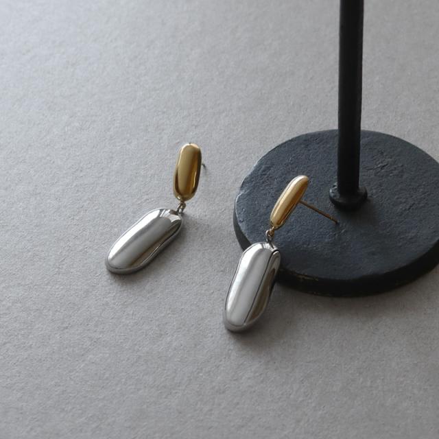 ピアス ステンレス 金属アレルギー レディース サージカルステンレス 2連 オーバル ニュアンス ミックス バイカラー ゴールド シルバー シンプル オケージョン 普段使い 大人かわいい オシャレ 揺れる 女性