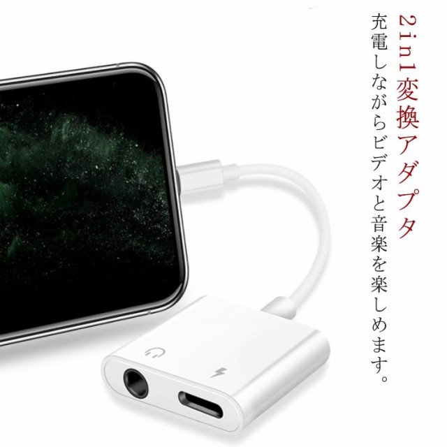 iPhone14 最新ios イヤホン 変換アダプター 変換ケーブル 3.5mm Lightning 2in1 二股 iPhone13 12 mini Pro Max iPhone SE3 SE2 XR XS 8 7 ケーブル アイフォン iPad iPhone11 音楽 充電 同時