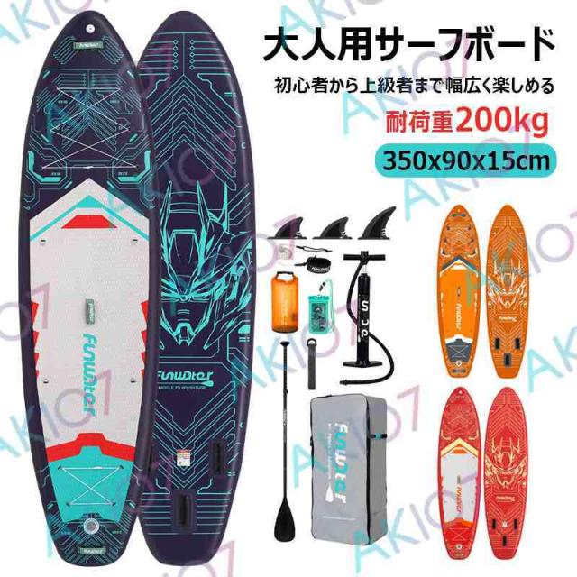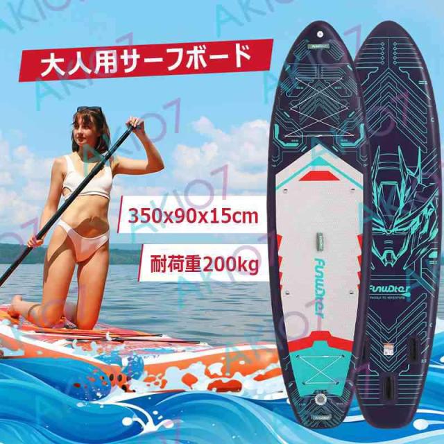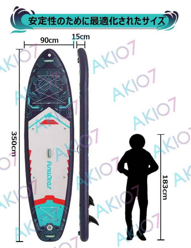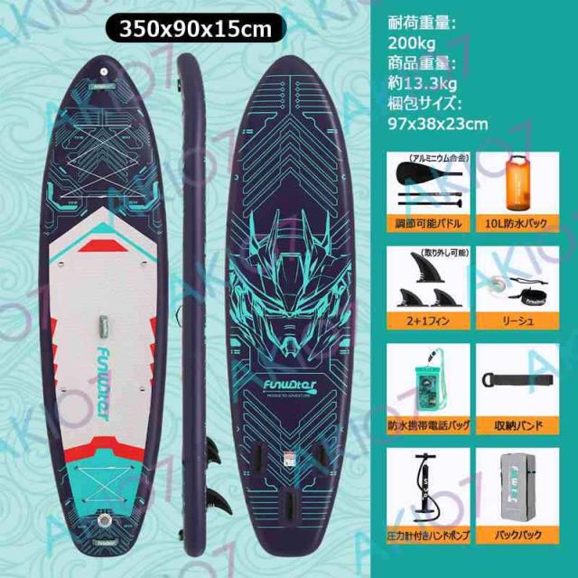 【長350cmx幅90x厚15cm】サップボード インフレータブルSUPボード カメラベース付き 調節可能パドル マリンスポーツ スタンドアップパドルボード 超広い 初心者 中級者 上級者 安全荷重200kg 釣り 水上散歩 ヨガ サップボード バックパック付き フィン付き