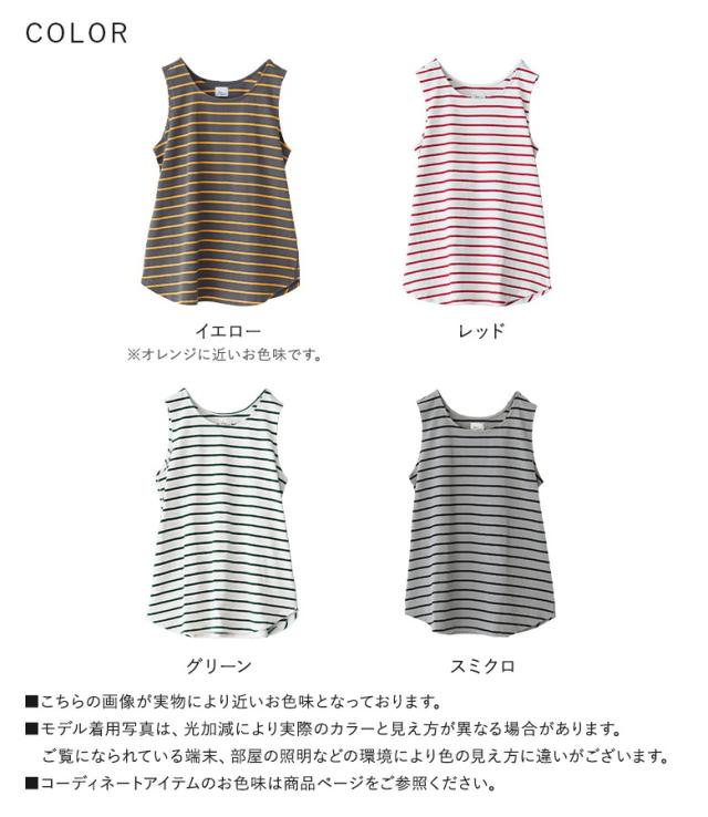 『カラーボーダータンクトップ』※メール便可※【10】[タンクトップ レディース トップス ノースリーブ ロング丈 クルーネック インナー コットン100% 綿100% 春 夏 オシャレウォーカー]