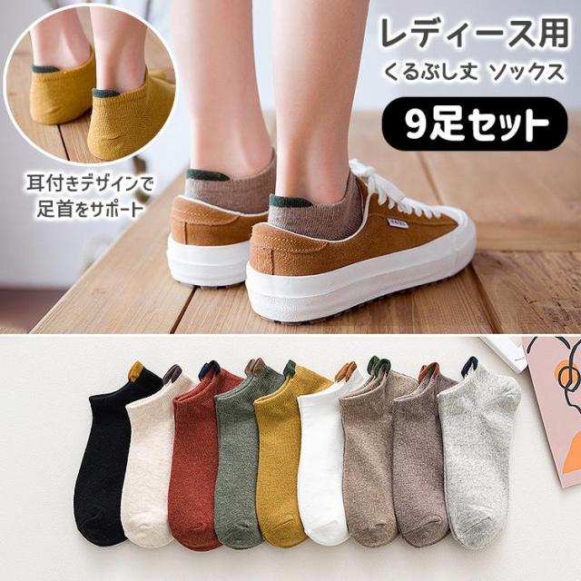 靴下 レディース おしゃれ ソックス 9足セット かわいい スニーカー ソックス 無地 夏 秋 冬 春 ブラック ホワイト レッド イエロー グリーン グレー ブラウン ベージュ