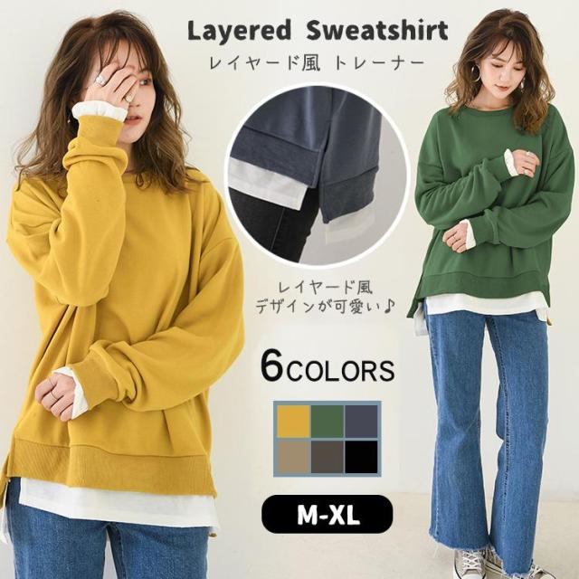 【レイヤード風がおしゃれで可愛い♪レディース用 レイヤード風 トレーナー】
