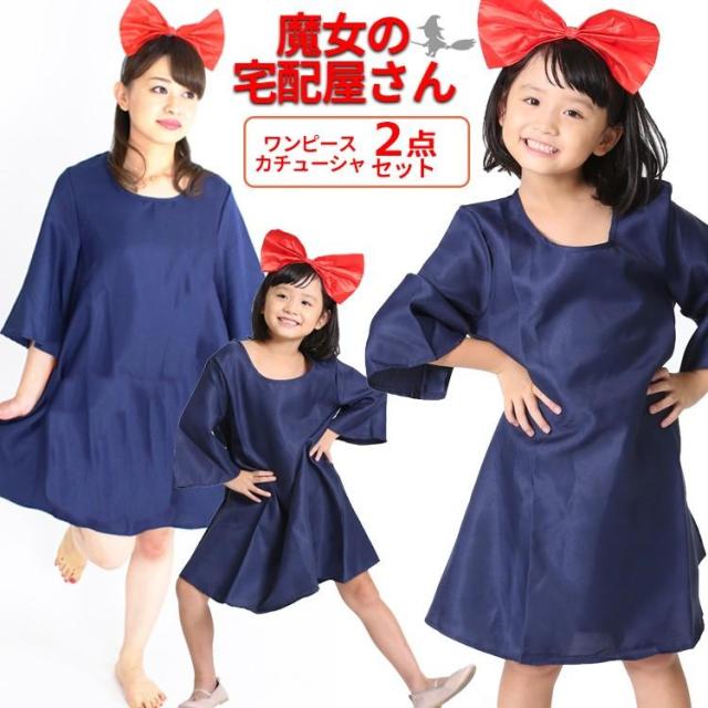 ハロウィン コスプレ 仮装 衣装 子供 レディース 魔女の宅急便 キキ 風 コスチューム 魔女 グッズ フリーサイズ ワンピース+カチューシャセット