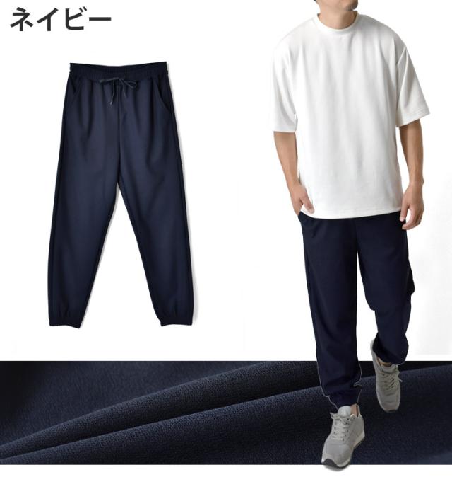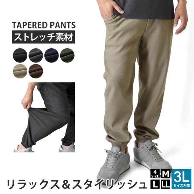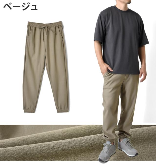 イージーパンツ ワイドテーパード メンズ ストレッチ ウエストゴム 前閉じ リラックス ジョーゼット ロングパンツ【D1N】【送料無料】【ゆうパケット】 冬新作