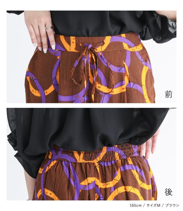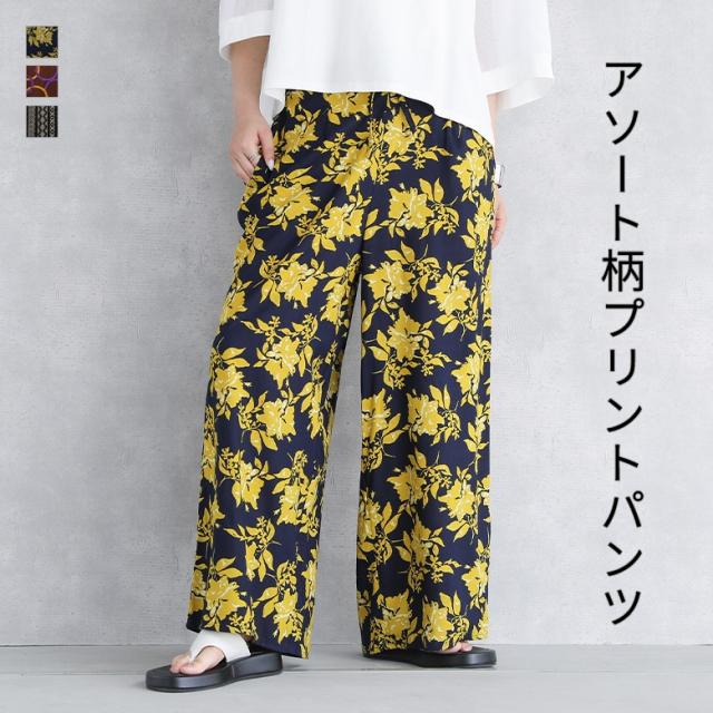 『アソート柄プリントパンツ』【メール便不可】【20】[パンツ レディース ボトムス ロング丈 総柄 花柄 フラワー アソート 丸 レーヨン ウエストゴム デザインパンツ ひも付き ポケット 夏 オシャレウォーカー]