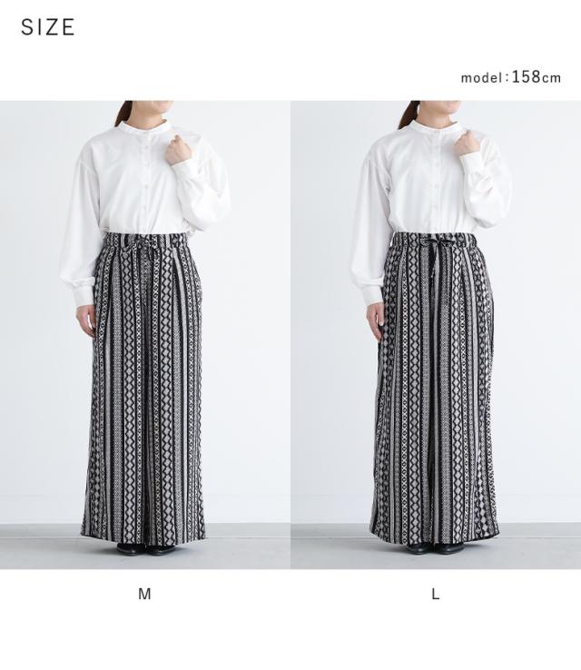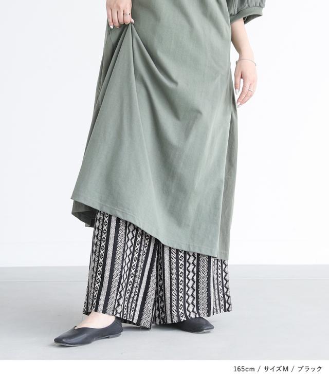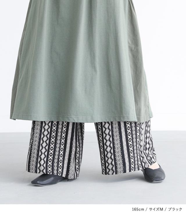 ■デザイン アソートの総柄が目を惹く、シンプルなトップスに合わせるだけでコーディネートが決まる一枚。やわらかく肌なじみの良い生地感で、リラックスした履き心地を叶えます。デイリー使いからお出かけまで、気負わず取り入れられるアイテムです。 ■コーディネート シンプルなトップスに合わせるだけで、柄の存在感が引き立つリラックススタイルに。足元はフラットサンダルを合わせて抜け感を出し、アクセサリーやバッグでさりげなくアクセントを加えるのもおすすめ。トップスをインすれば、スタイルアップ効果も期待できます。 ■素材 薄手で柔らかい肌触りのレーヨン素材を使用。一枚でさらりと涼しげにご着用いただけます。 ■製品についての注意書き 染色の特質上、発汗や摩擦により色落ちすることがありますのでご注意ください。 また、着用中の摩擦により色移りしやすい特性がありますので、白や淡色との組合わせはご遠慮ください。 他の製品に色が移ることがありますので、一緒に洗わず単独で洗ってください。 ご了承の上、ご購入いただきますようお願いいたします。 |