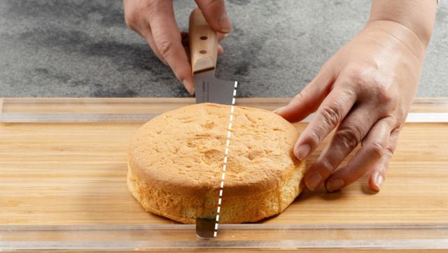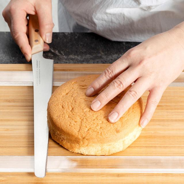 刃先の形状は、ケーキを水平にスライスする際に進み具合が分かりやすく、コントロールしやすい設計です。