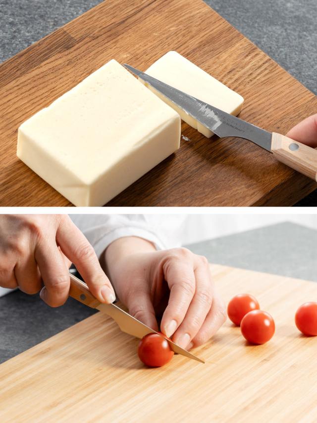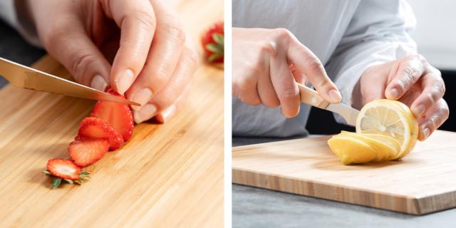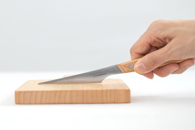 刃幅がスリムで刃渡りが短く、切れ味に優れたマルチナイフです。刃の表面積が小さいため、食材が刃にくっつきにくく、冷えたバターもストレスなくカットできます。イチゴやレモンなど、小さな食材のカットにもぴったりです。