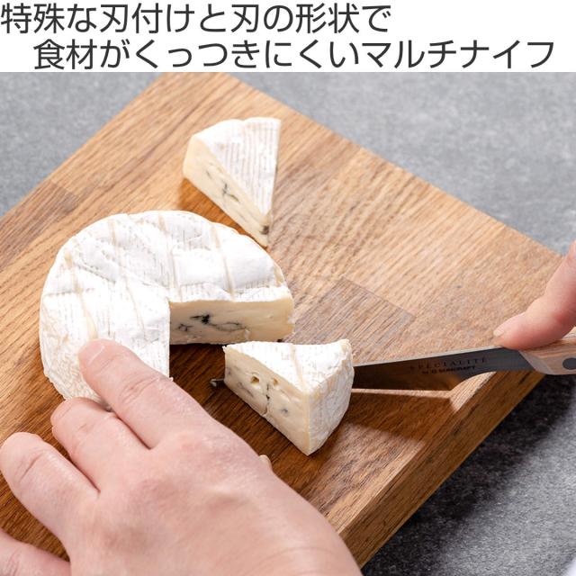 普通のナイフではカットが難しい、組織のもろいシェーブルチーズやくっつきやすいカマンベールチーズのカットもしやすいナイフです。くっつかずに断面が美しく仕上がるため、チーズの熟成具合の確認や、おもてなしのチーズプレート作りでも活躍します。
