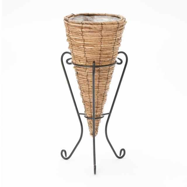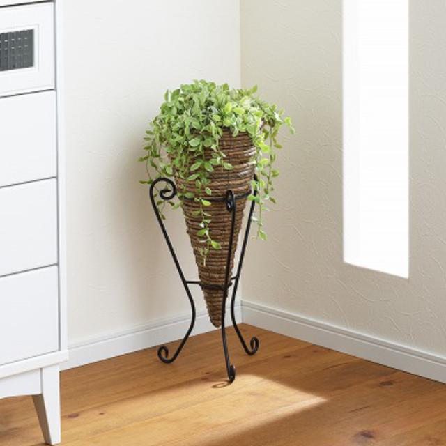 ●スチール製本体にナチュラルなバスケットがセットされたポットスタンドです。