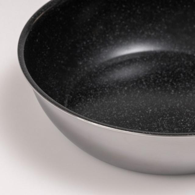 | 材質 | 本体:2層クラッド材(内側:アルミニウム合金、外側:ステンレス鋼(クロム18%)) 取っ手:木材 フック部分:アルミニウム合金 内面加工:セラミック塗膜加工 外面加工:研磨仕上げ |