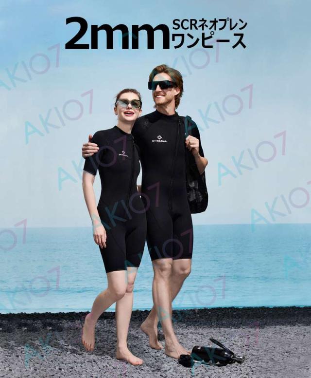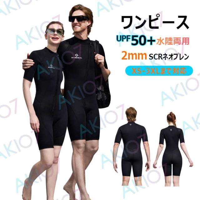 【2mm SCRネオプレン&ワンピース型】ウェットスーツ 半袖 ショートパンツ 水中作業 素潜り ダイビング サーフィン ウィンドサーフィン マリンスポーツ 水上活動 レディース メンズ 擦り傷防止 保温 日焼け防止 伸縮性