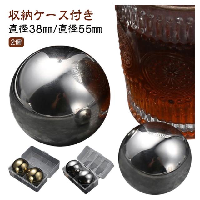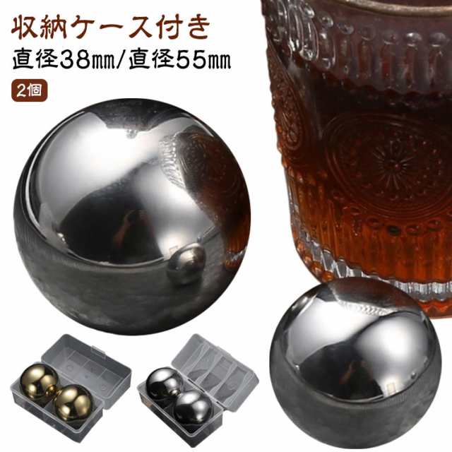 2個セット アイスボールメーカー ステンレス 溶けない氷 38/55mm 収納ケース付き ステンレス氷 丸型 球形氷 丸氷 丸い氷 家庭用 急速冷却 繰り返し使用可能 夏用 男性 父親 誕生日 プレゼント お酒 タンブラー おしゃれ プレゼント 永久氷 ウイスキー 氷の代用品 【送無】