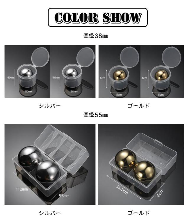 | 304ステンレス製アイスボールメーカー。【収納ケース付き】【直径38mm/直径55mm】【2個】 【冷たさを長時間キープ】より長くリラックスタイムをお楽しみいただくために???ステンレス内の冷媒を比較検討し、冷却力が従来比28%アップしました!※計算熱量による比較 【安心の304ステンレス製】調理器具にも使用される304ステンレスを使用しております。汚れ、サビに強く、長く清潔にお使いいただけます。 【プレゼントとしても大好評】お酒が好きなあの方へのプレゼントとしていかがですか?誕生日や父の日、クリスマスプレゼントにも大変ご好評いただいております。 | |