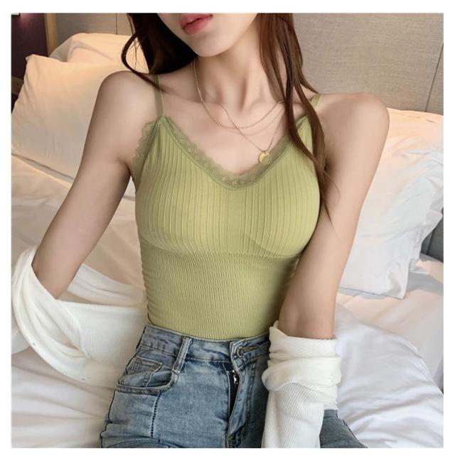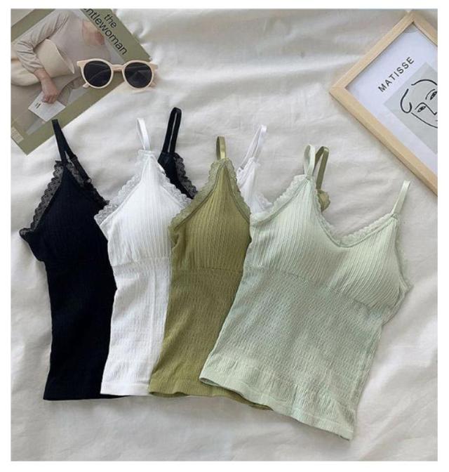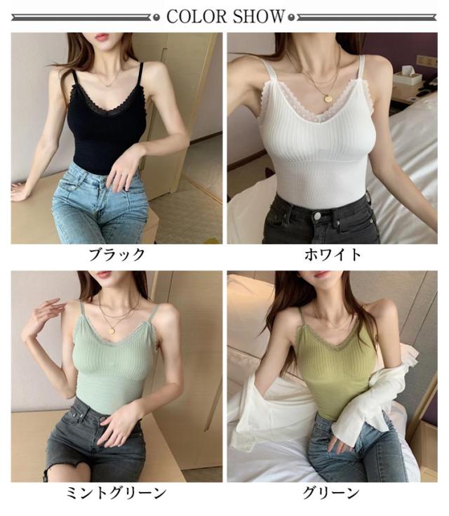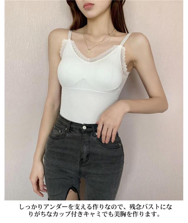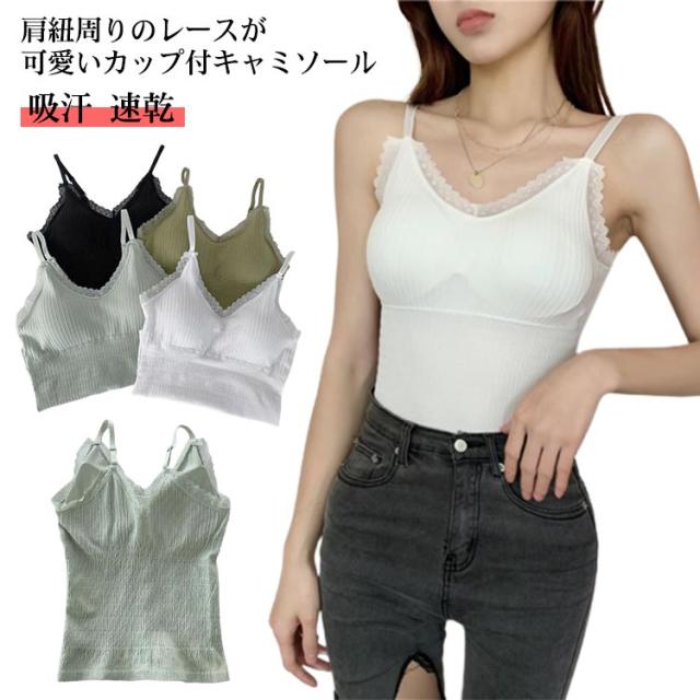 カップ付きキャミソール レース レディース カップ付き キャミソール 盛れる インナー 下着 肌着 ストレッチ スリム フィット 透けにくい 吸汗 速乾 カップ付きキャミ 黒 白 グリーン フリーサイズ 大人 可愛い 【送料無料】