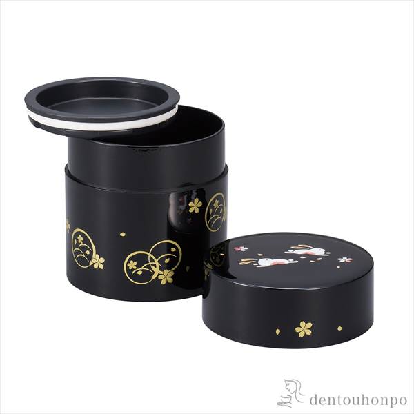 茶筒 丸うさぎ 黒 シリコンパッキン付中蓋 ( 退職祝い 定年 茶道 茶入れ 日本茶 おしゃれ おすすめ 山中漆器 結婚 出産 内祝い )