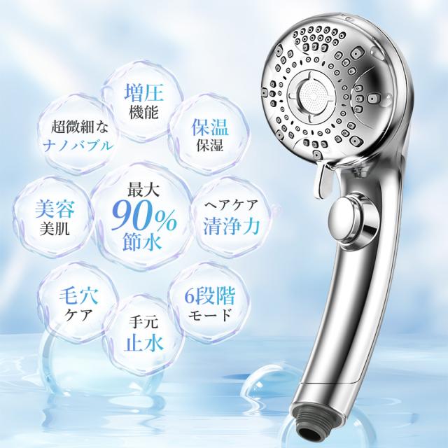 【期間限定 ポイント10倍】シャワーヘッド マイクロナノバブル ミスト 6段階モード 止水ボタン 節水 洗浄力 増圧マイクロバブル 手元ストップ 汚れ 除去 毛穴 ケア 美肌 止水 保湿 美顔 多機能 保温 うるおい ナノバブルシャワー ヘッド 取り付け簡単 送料無料