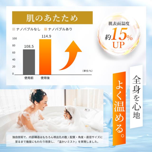 【直径1μm以下のマイクロナノバブルで洗浄、保湿】