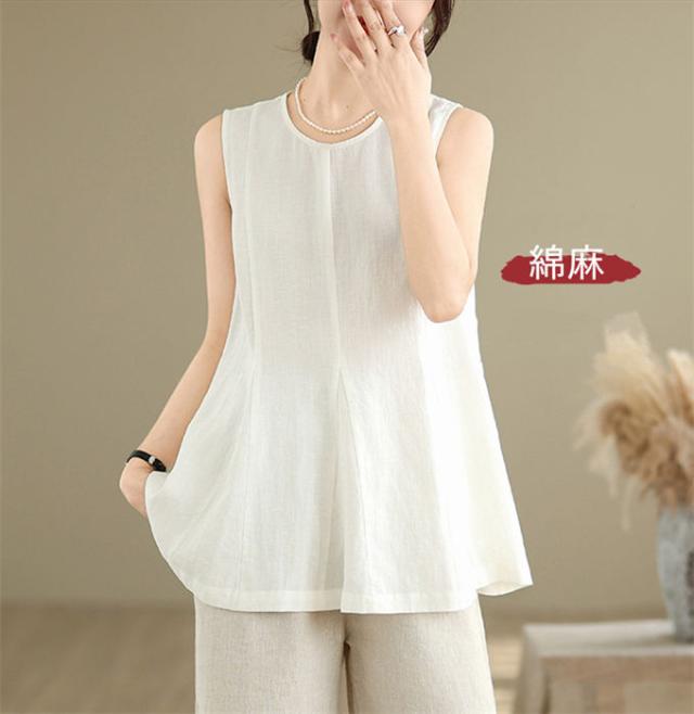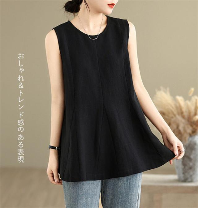 タンクトップ レディース リネン トッ トップス シャツ ブラウス 超目玉商品 ブラック ホワイト M L XL 2XL