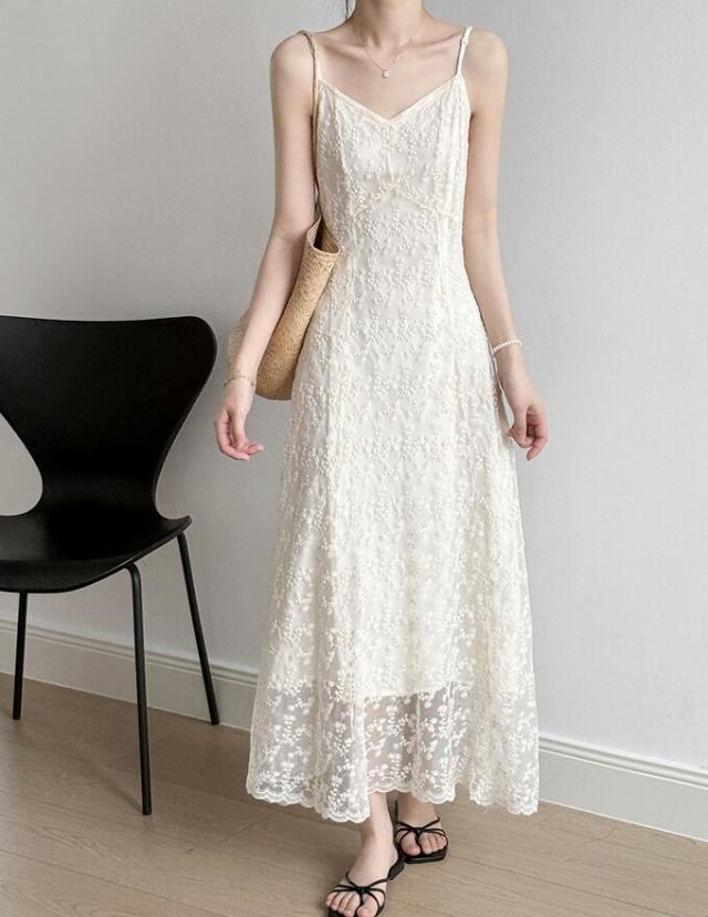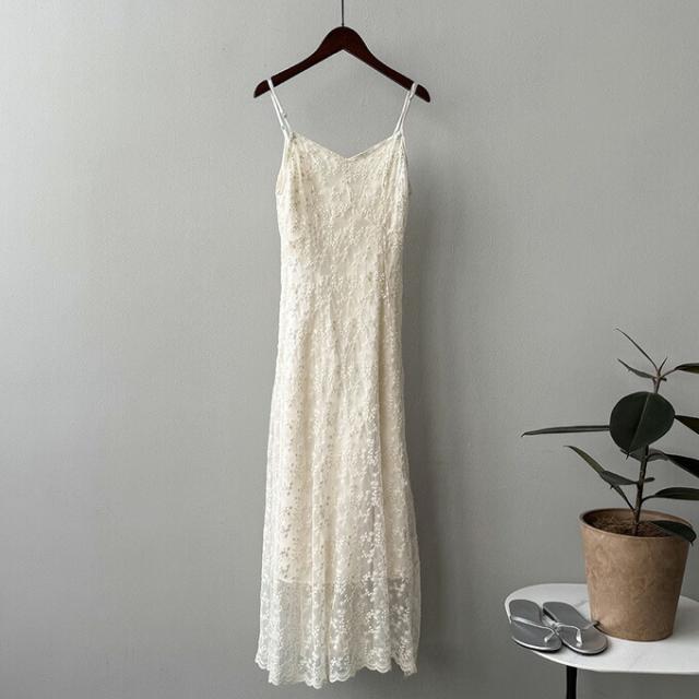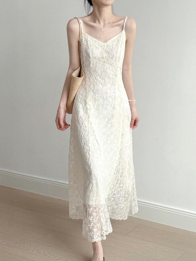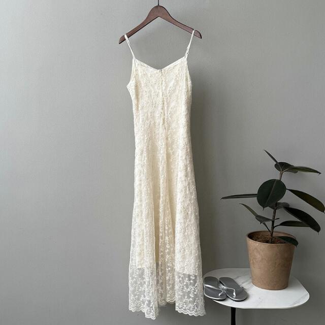 レースワンピース 総レース Vネック キャミワンピース レディース 花柄 刺? Aライン ロングワンピース キャミワンピ 大人 カジュアル レース ロング丈 ワンピース ファッション 夏物 女性