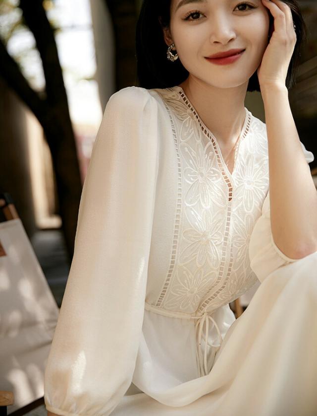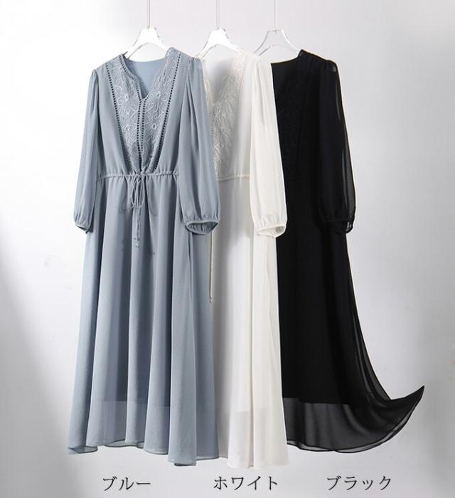 ロングワンピース レディース 長袖 刺 レディースファッション 超目玉商品 ホワイト ブラック ブルー S M L XL
