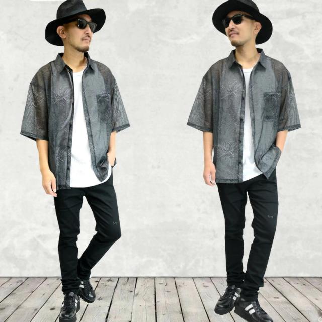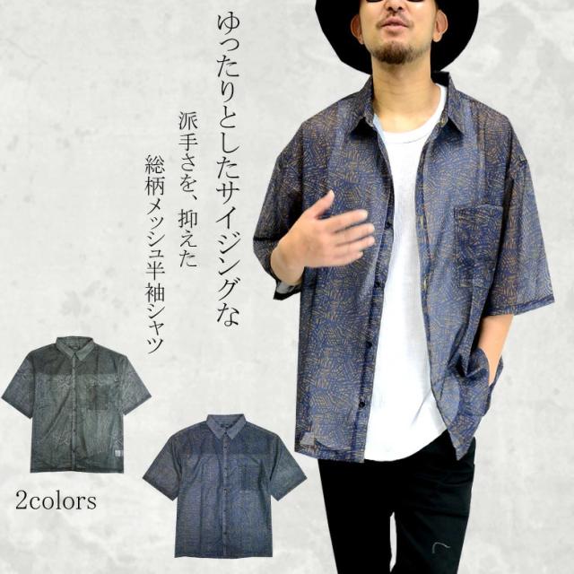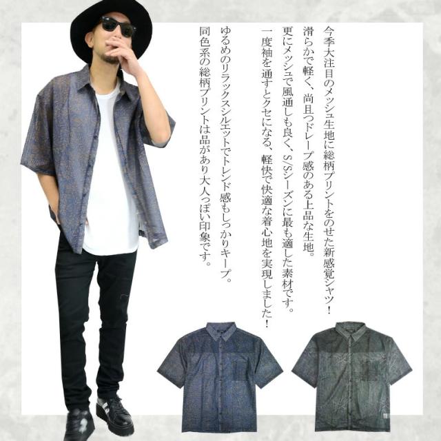 季大注目のメッシュ生地に総柄プリントをのせた新感覚シャツ!