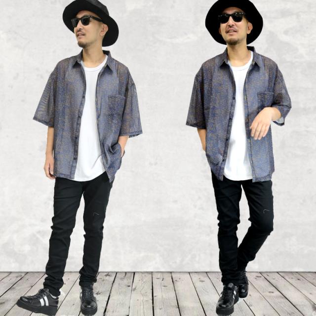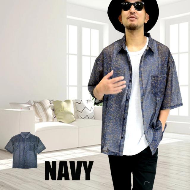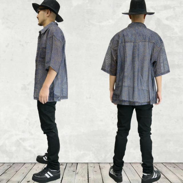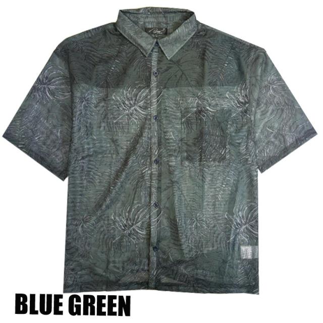 【閉店セール】新作 半袖シャツ シャツ ブラウス 総柄メッシュ 0403l123 ビックシルエット ビックシャツ 半 冷感 メンズシャツ 柄物 ブルーグリーン ネイビー メンズシャツ 夏服 M Lサイズ カジュアル 韓国ファッション SHIRT 羽織り 涼しい 大人 ゆったり メンズ