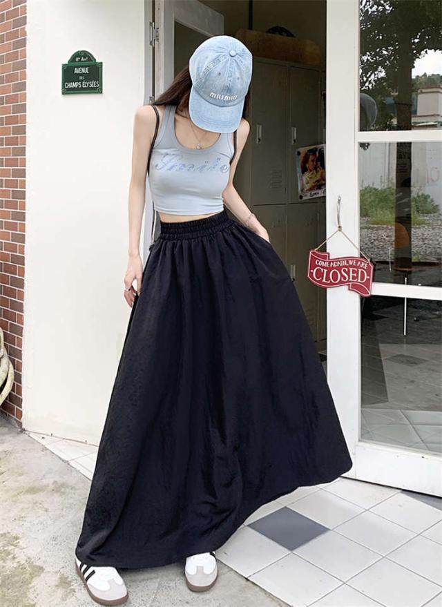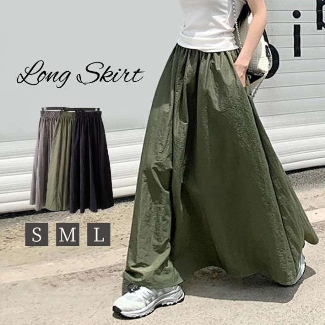 ロングスカート レディース 春 夏 秋 無地 カーゴ ロング ボトムス マキシスカート カーゴスカート ウエストゴム ポケット 体型カバー フレア Aライン アウトドア ゆったり 大きいサ ミリタリー