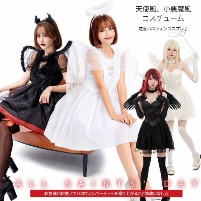 定番ハロウィン コスプレ 仮装 天使 悪魔 魔女 天使の羽 悪魔の羽 エンジェル デビル ウィッチ コスチューム 衣装 可愛い 大人 女性 セクシー レディース 巫女 ペア お揃い 大きいサイズ ハロウィン仮装 コスプレ衣装 パーティ 黒 ブラック 白
