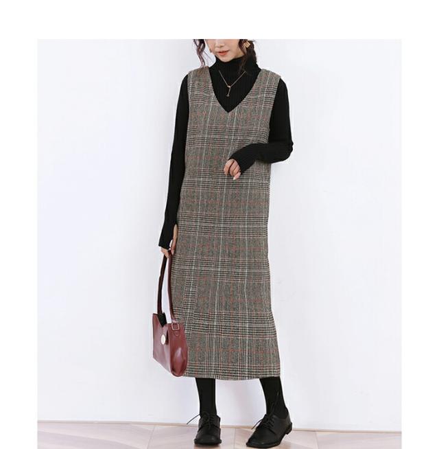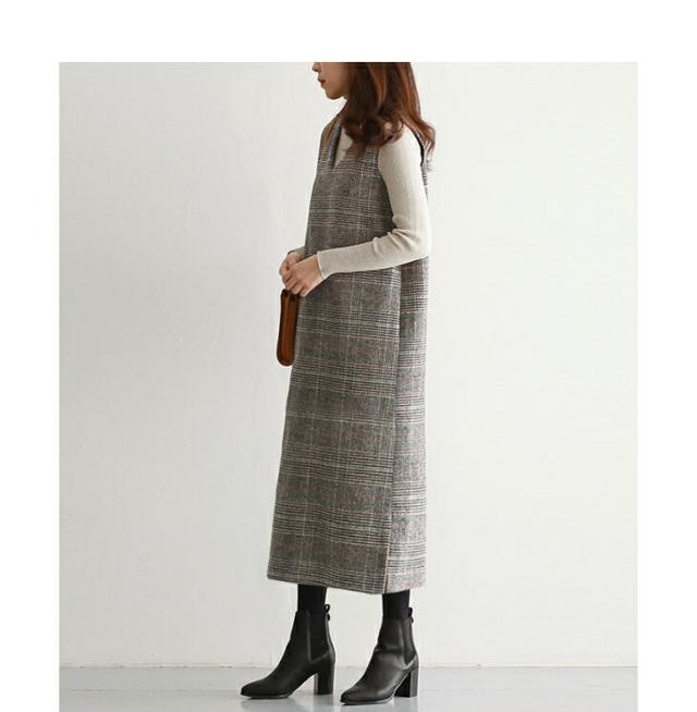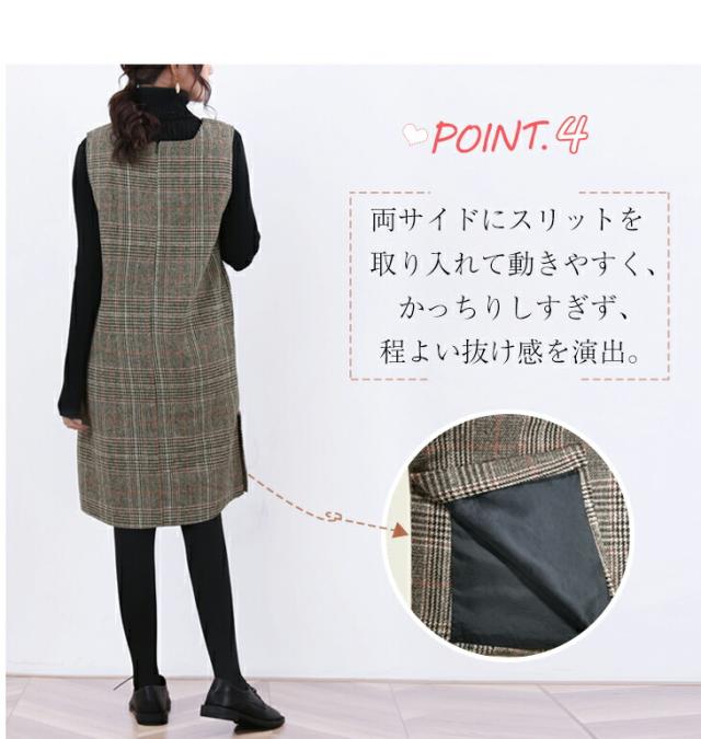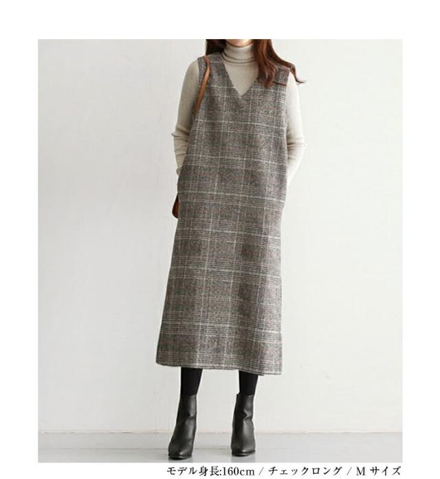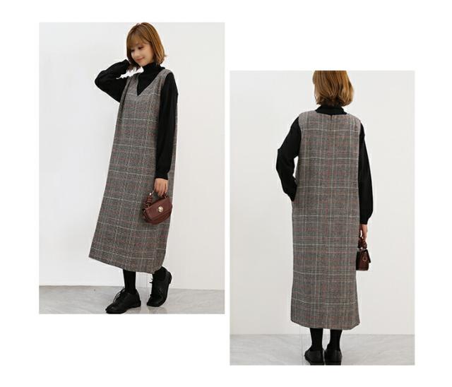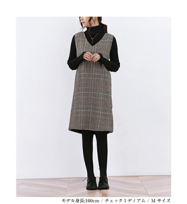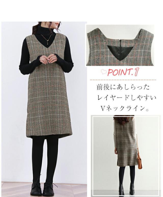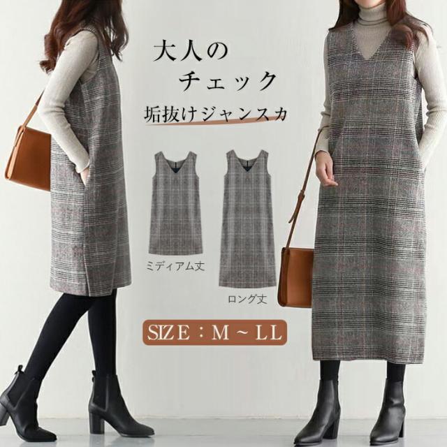 ジャンパースカート ロング丈 ミディアム丈 ノースリーブ Vネック チェック柄 カジュアル フォーマル オフィス 通学 通勤 グレーチェック レディースファッション 20代 30代 40代 50代 60代 ワンピスター