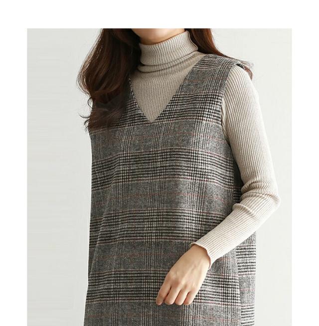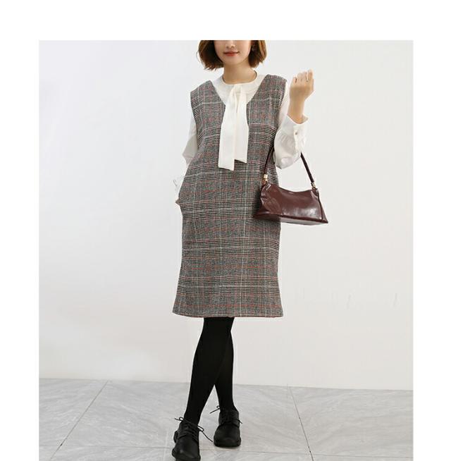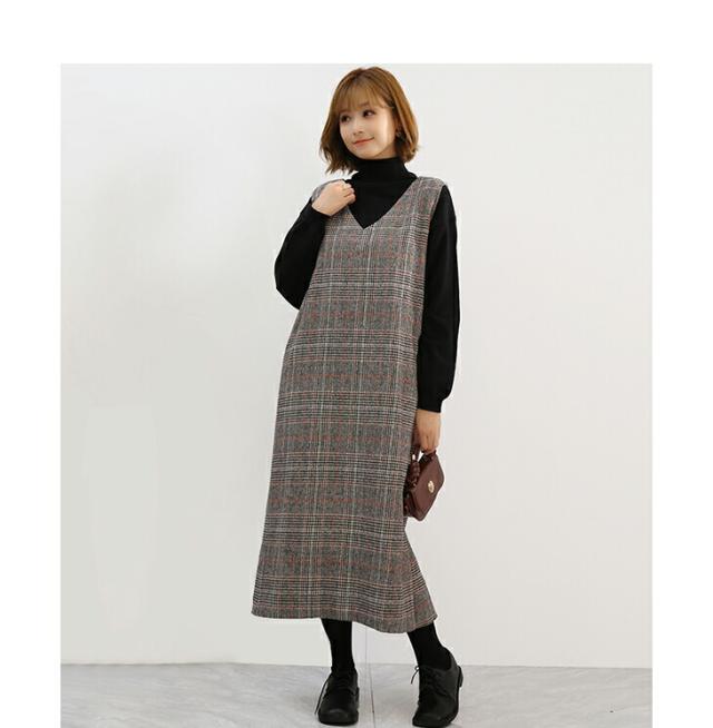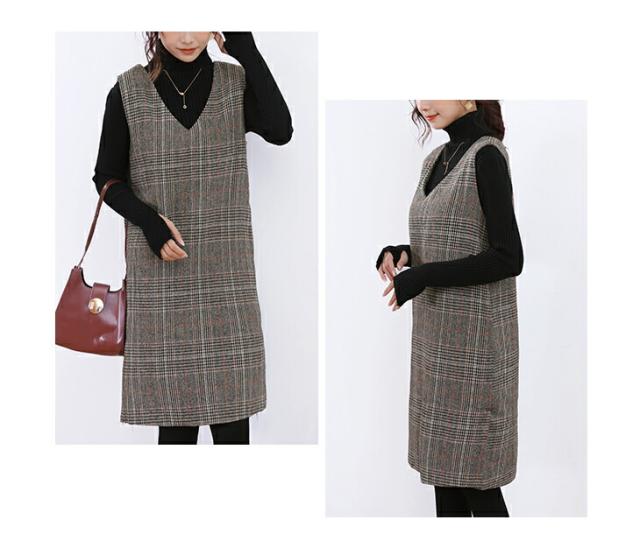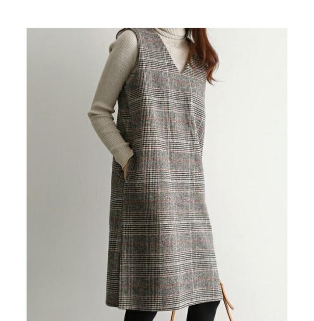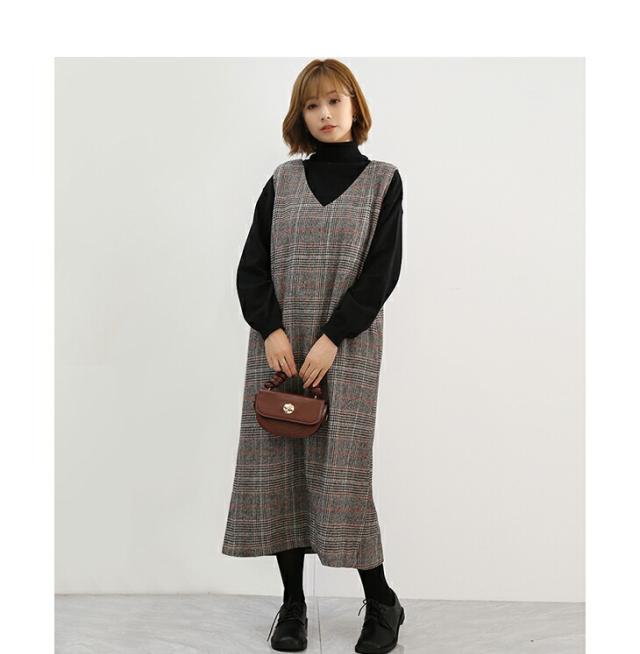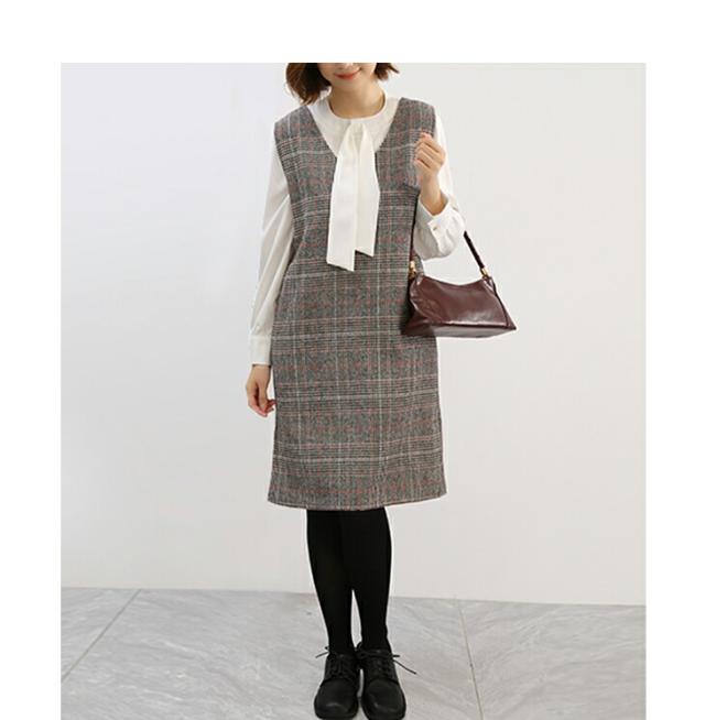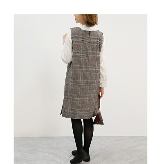 ジャンパースカート ロング丈 ミディアム丈 ノースリーブ Vネック チェック柄 カジュアル フォーマル オフィス 通学 通勤 グレーチェック レディースファッション 20代 30代 40代 50代 60代 ワンピスター