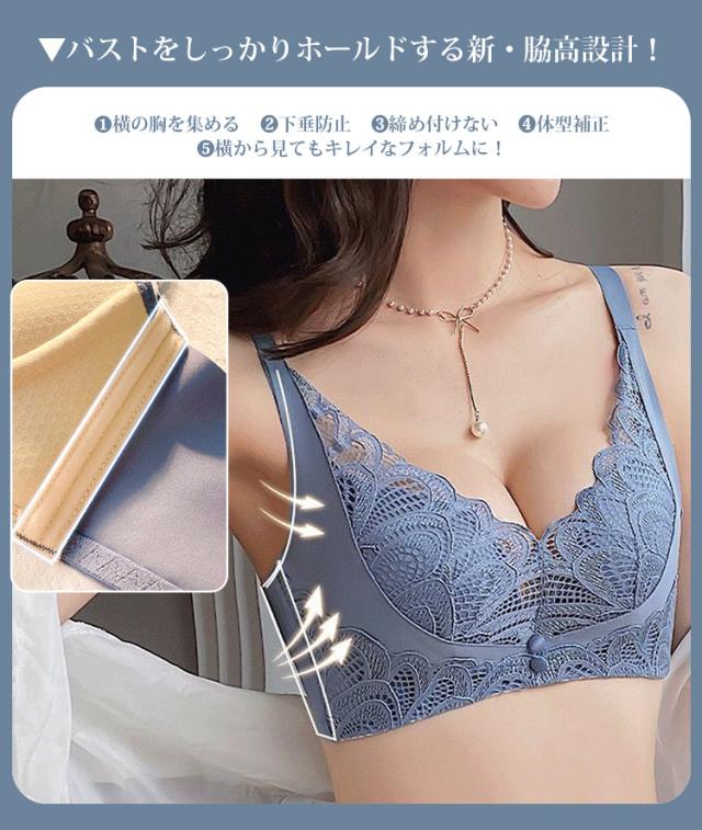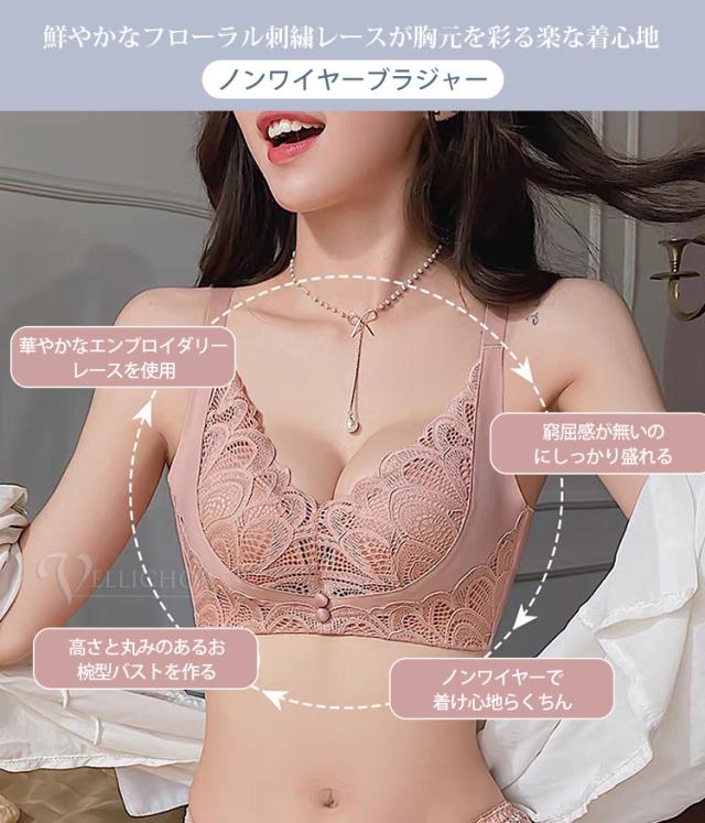 ノンワイヤーブラジャー ブラジャー ノンワイヤー ブラ 刺繍レース 5COLORS 脇高 美胸メイク 谷間 盛れる 補正ブラ 下着 おしゃれ 脇肉 綿混素材 揺れない 30代 40代 50代 女性 プレゼント クリスマス 年末 ファッション ギフト 贈り物 誕生日