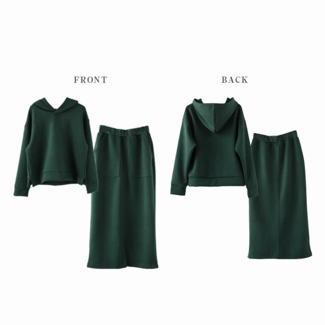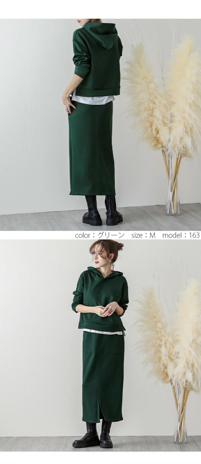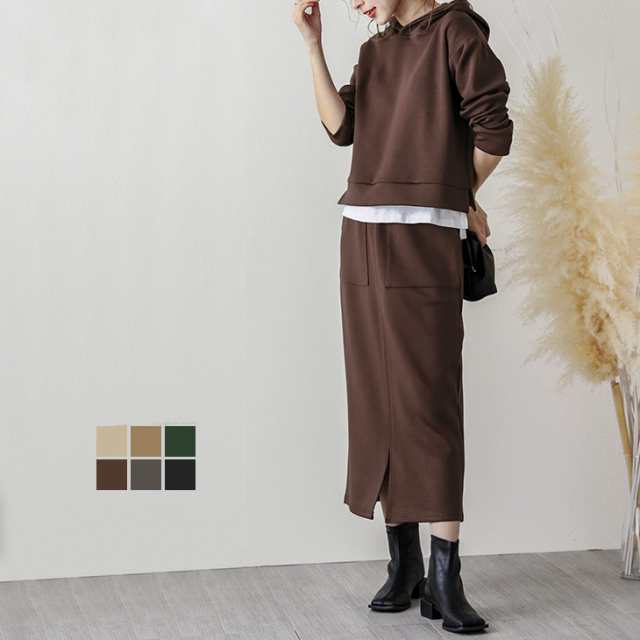セットアップ スカート レディース 上下セット カジュアル フード タイトスカート パーカー ウエストゴム 無地 通勤