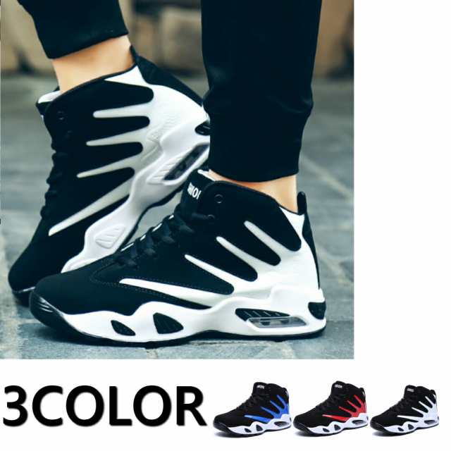 メンズ ハイカット エアー スニーカー 靴 バッシュ シューズ ハイカットスニーカー オシャレ 白スニーカー ストリート系 ミドルカット インソール 中敷 身長アップ 最大7.5cm ダンス 韓流 K-pop 赤 青 白 秋