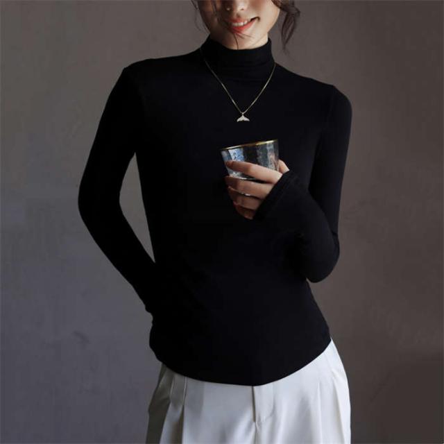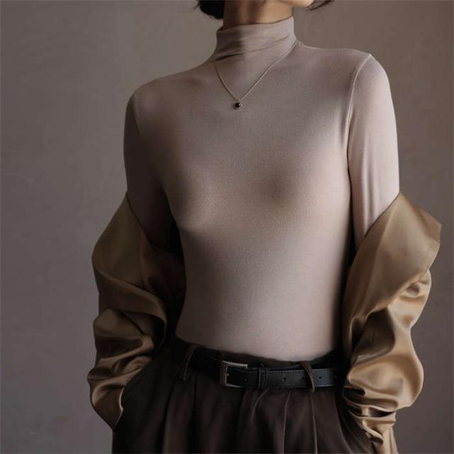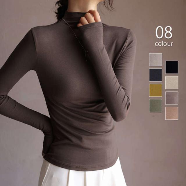 カットソー 長袖 ハイネック レディース トップス 秋冬 インナー 大きいサイズ タートルネック 薄手 無地 重ね着 レイヤード 伸縮性 通勤 通学