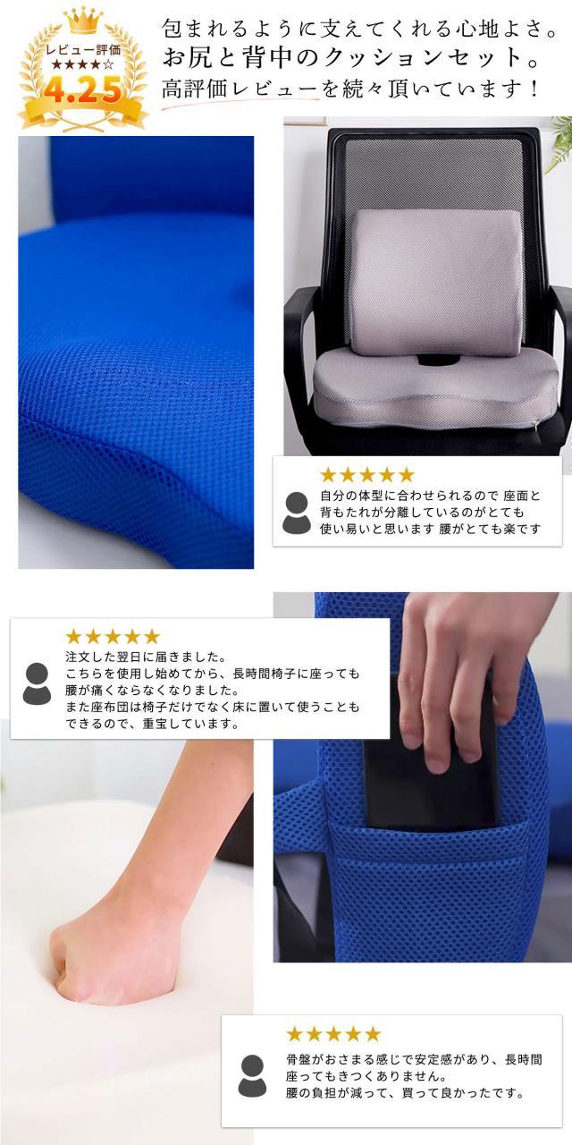 背もたれ クッション オフィス 椅子 長時間 座布団 クッションセット 腰痛 対策 改善 防止 低反発 ランバーサポート 女性 骨盤クッション 骨盤 ゆがみ 矯正 グッズ 椅子用 シートクッション 厚め 疲れない いす用 座椅子 骨盤サポート