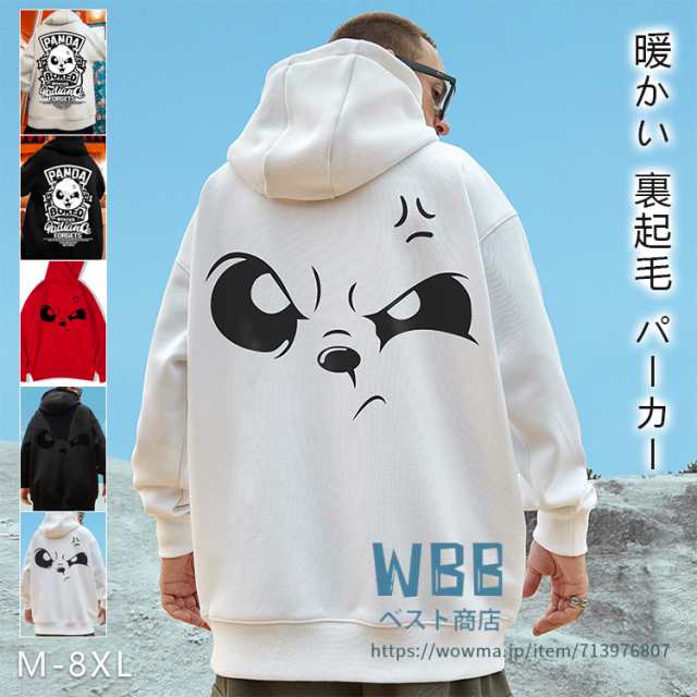 メンズ パーカー 秋冬 大きいサイズ 裏起毛パーカー メンズ プルオーバー パンダ柄 スウェット プリント トップス フード付き ゆったり カジュアル ファッション M-8XL